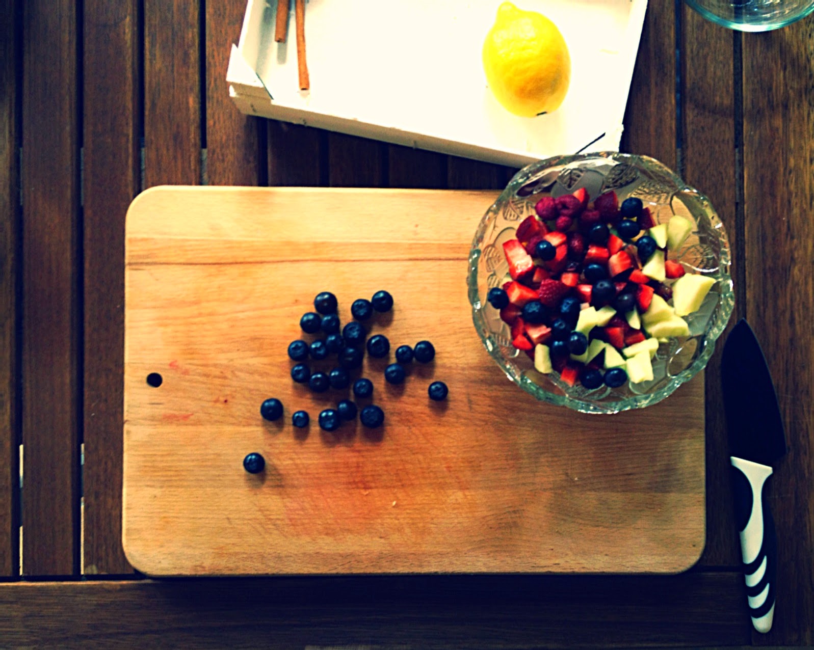 - Naturalmente podemos sustituir las frutas y las cantidades a nuestro gusto o según temporada. Ésta combinación en particular me gusta mucho aunque a veces también añado melocotón, cerezas, nectarina, higos, piña, fruta de la pasión, uva…